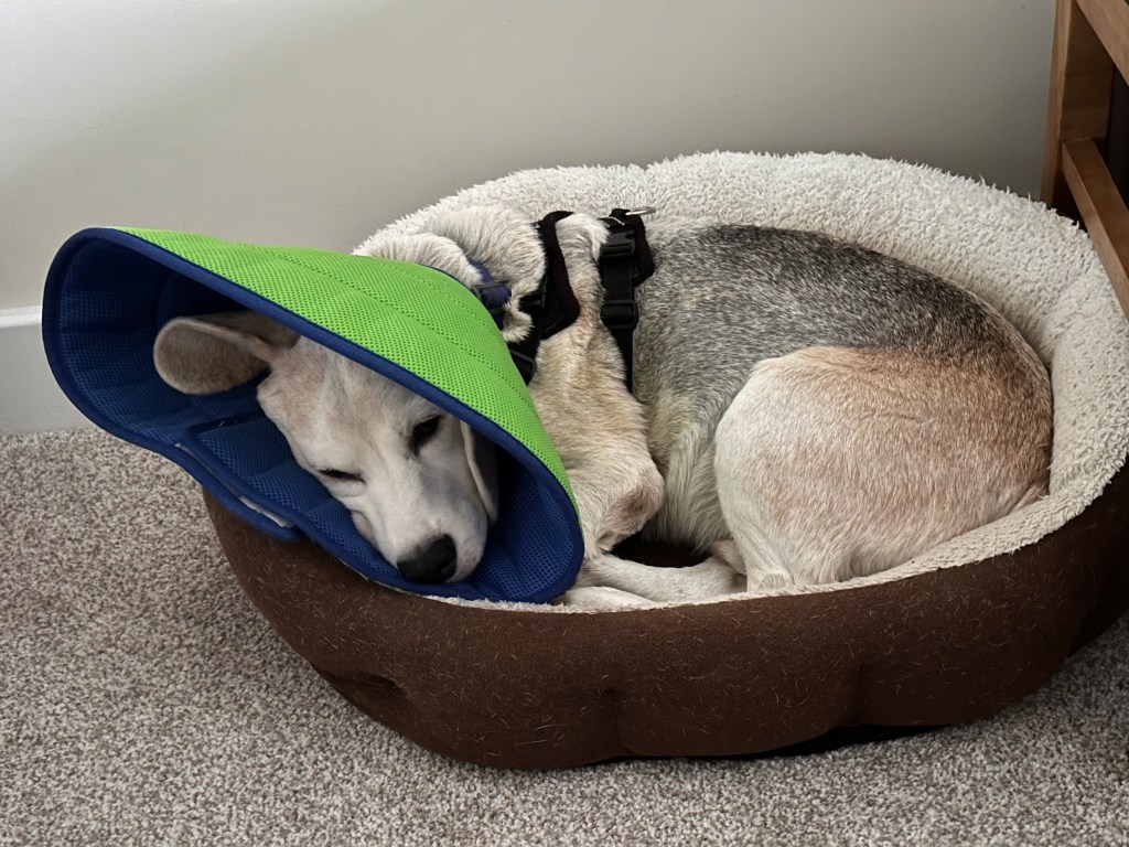 There we were, halfway through November, and the Cone of Shame was not weighing me down. Days were fun, nights were quiet, even tranquil and life was good.