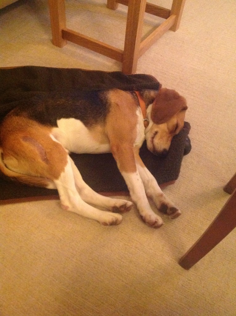 When evening arrived I was a bit unsettled. To be honest I didn’t know what to do really. Would I be allowed to sleep in one of my beds, or maybe in the crate? I had 2 beds so this was a luxury I wasn’t used to and I couldn’t really make up my mind where to sleep. And I had a great blanket which I could rest on, when snoozing in front of a lovely warm fire. Decisions, decisions, but all good decisions thankfully.