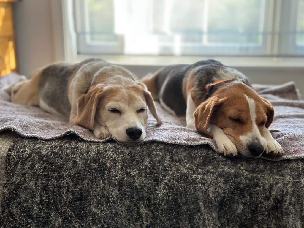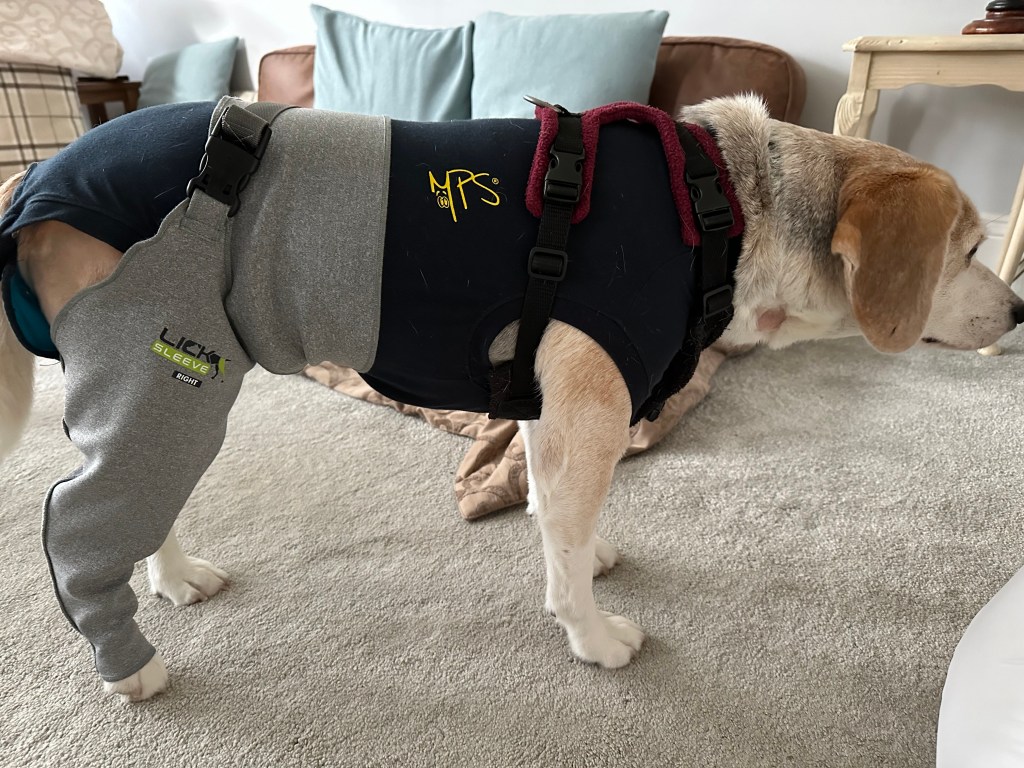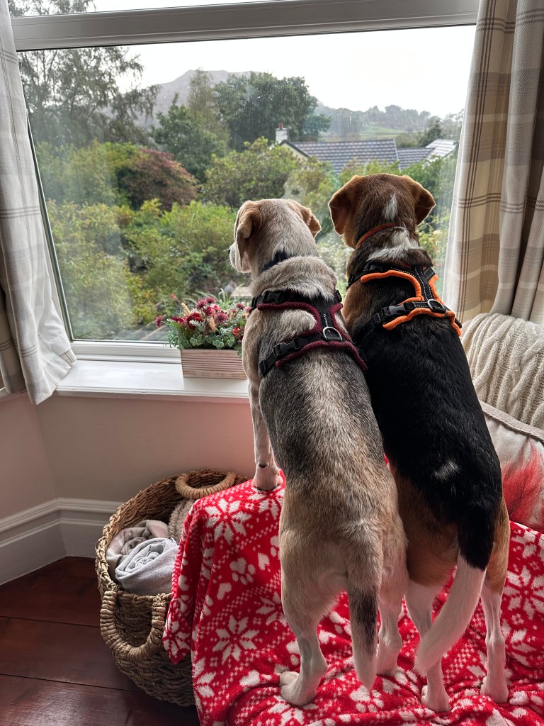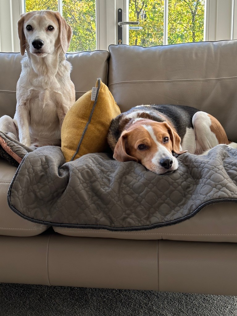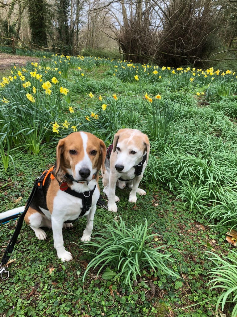 This month started as January ended. I was still not “allowed” upstairs, I was going to physio once a week and I was banned from bitey face with Lenny. My leg was healing and I wanted to be out and about. I was being restrained by anxious parents who didn’t want me to undo all the good work. The physio lady had to remember she was dealing with a thirteen year old beagle and not one much younger, when I was getting my exercises. I got caught upstairs, laying on a bed. I didn’t get told off. Lenny was still bored without play time.