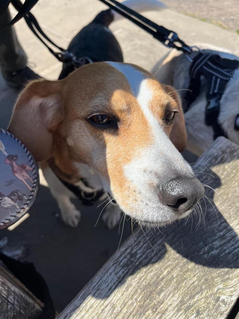 We arrived home and had to suffer the ignominy of having a wet wash and wipe down before we could tuck into our breakfast, albeit very late. A quick run around the house followed by a session of bitey face led to an allegation of us being a couple of idiots and we were told to go and find our beds. Lenny went off to one of my snoozing beds so we had more bitey face to sort out that difficulty. Eventually we were able to settle into a routine of snoozing, snoring and circling. A good day was had by all. Well, me and Lenny enjoyed it. So there it is, I learned that beagle wrangling is a thing. Who knew?