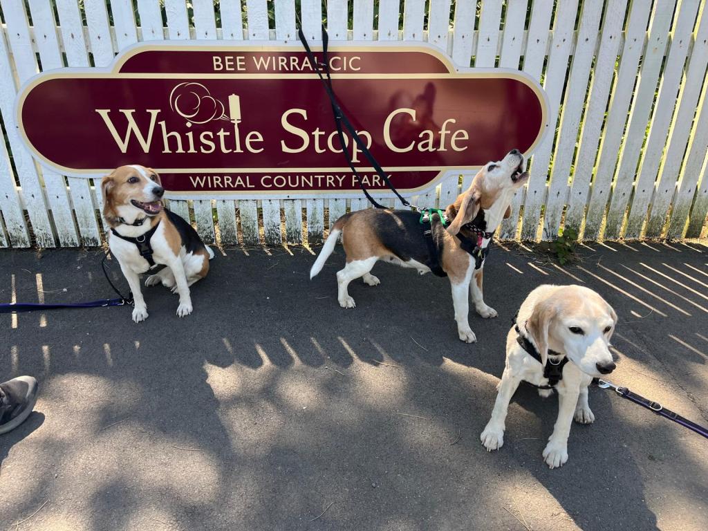 As a result of my birthday I was loaded into my car prison cell and transported to an unknown destination. I was promised fun, plenty of shenanigans and plenty of belly rubs, head scritches and ear ruffles. Lenny came along for the ride and we looked quizzically at each other when loaded into the car. Down the lane, turn right, turn right again, follow the road for miles and miles and miles, turn left, turn right, drive along a motorway and then turn left along a narrow road. We could smell something familiar but couldn’t quite put our paw on what it may have been. As soon as we had parked up and the boot was opened we saw the most welcoming face of Sasha beagle who greeted us in typical fashion. This seemed to make a few people in the vicinity smile and laugh. Out of the car and onto our paws. Welcome to the Wirral Way the sign said. We had arrived at a place called Thurstaston and it looked really nice.