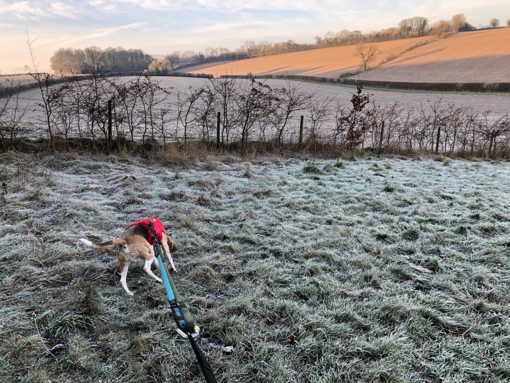 December arrived and the cold chill of the Arctic wind made the grass frosty and bleak. The low sun played its rays across the fields turning them into gold. Walks around the woods and fields were done with the usual gusto albeit also with a view to getting back home into the warm.