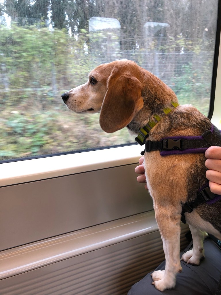 We lost a great friend in early September 2018 and a large number of friends all chipped in to buy a permanent and wonderful reminder of Charley beagle. We were lucky to be there when the stone bench was delivered. Later in the November I was lucky enough to get another tube ride and this time it was with both my pawrents.