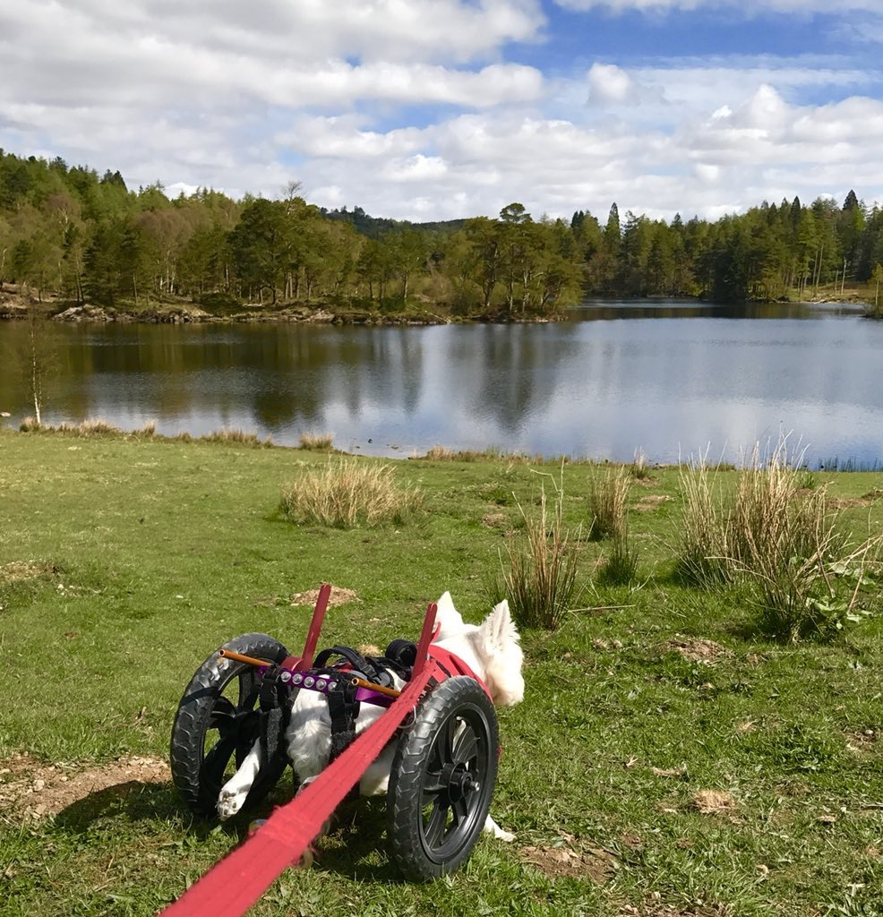 I took to everything without complaint. It took a couple of goes before I realised my hot rod was a good thing but once I realised it meant I could run in it, I was fine! I’ve done all my physio without any complaint, however I think this was probably because food was involved. I’ve adjusted with each step of this journey. It’s Mumz who found it all upsetting and has cried buckets over the years but I’ve not dwelled on how I used to be. As long as I can get where I wanna go, I don’t care how I get there. I don’t mind saying I have been an inspiration to Mumz and everyone in the family. I’ve not changed one bit from the waist up. My zest for life has always been strong and I’m always wanting to be up and at them. I’m not gonna lie, I’m not cheap to look after but I’m worth every single penny and I’ve got a really close bond with Mumz because I rely on her so much. I’m quite fond of her despite her being a bit needy. I can’t walk at all now but we knew this would happen and it’s now 8 years since they told Mumz to put me to sleep and I’ve had a great time! I have had lots of fun, holibobs, trips to seaside and so on. I’m 14 and a half now so I’ve done brilliantly. Me being disabled hasn’t made me any the less of a great pet and friend – if anything the opposite because I so enjoy life it makes it all worth while. Every owner has a special bond with their pet but I think the bond you develop with a disabled pet is a very special one, and who wouldn’t want that.
