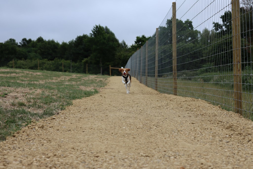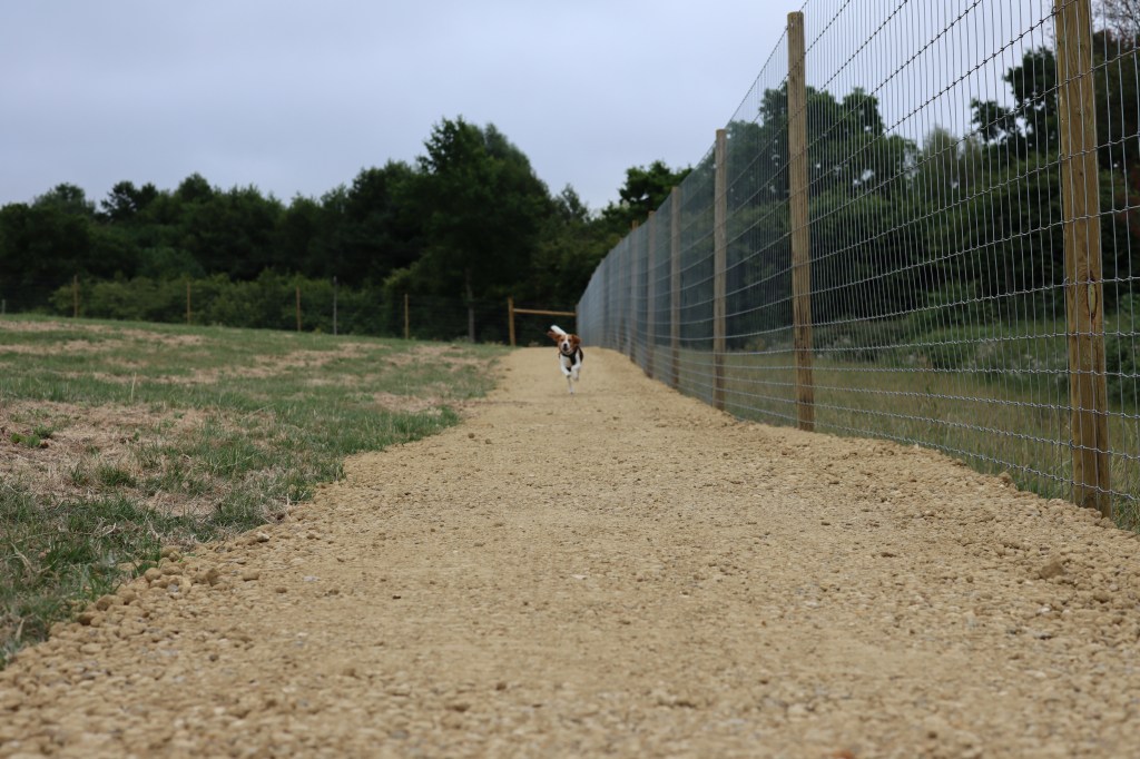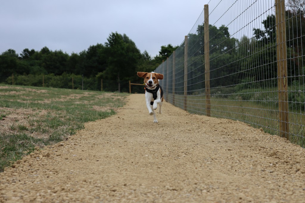 Dad was taking the car into the garage early yesterday morning as it needed fixing. As such Lenny and I were in sole charge of our mum, so we knew we could have some fun. On “mum only” days we would leave the house, go up the old road, briefly into the woods, then out and around the fields. This gives us maximum chance of a snifari whilst giving mum a reasonable chance of keeping her shoulders in their sockets. Anyway we left and then turned right. Away from the old road? We had been this way once before and had strolled (read pulled on our respective leads) through the bigger woods on the other side of the big road. Surely she wasn’t making the same mistake again. Under the bridge, right along the footpath and then we descended the track toward the farm with the stagnant pond. We wandered (read pulled on our respective leads) along sniffing and wondering where we were going. Left turn and the gate was closed behind us. We sat and were told “You’ve got 25 minutes so no shenanigans”. No chance, we were at the Paw Paddock and we only had one parent to try and control us.