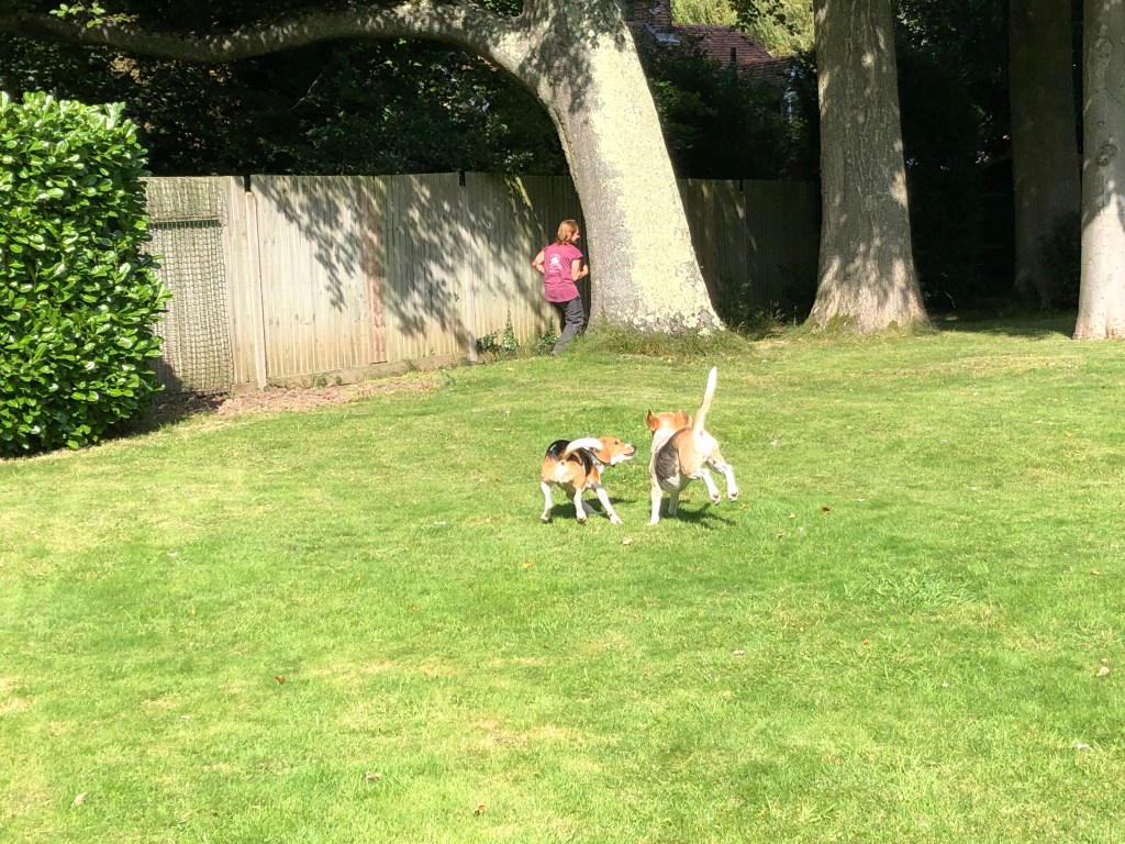 As soon as we realised it wasn’t raining we were quickly on our toes and pulling our respective parents along the road. Suddenly we were turned around and marched back towards home. We had hardly started our walk. What was this sorcery? Dad opened the car and we were cajoled into our travel crates. Lenny and I looked at each other quizzically, what was going on? It wasn’t time for the v-e-t visit, surely? Then we were off the driveway and headed down the road, turn right and then turn right again after a mile or so. The road went left and then right, we were getting lost now until we pulled up at somewhere familiar. When the boot was opened, a scent filled our noses that told us we were in for a fun time.